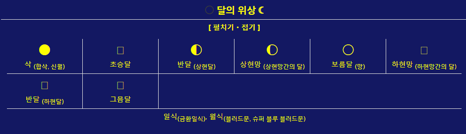 이때 달이 보이는 모습에 따라 다양한 이름을 가지고 있다.