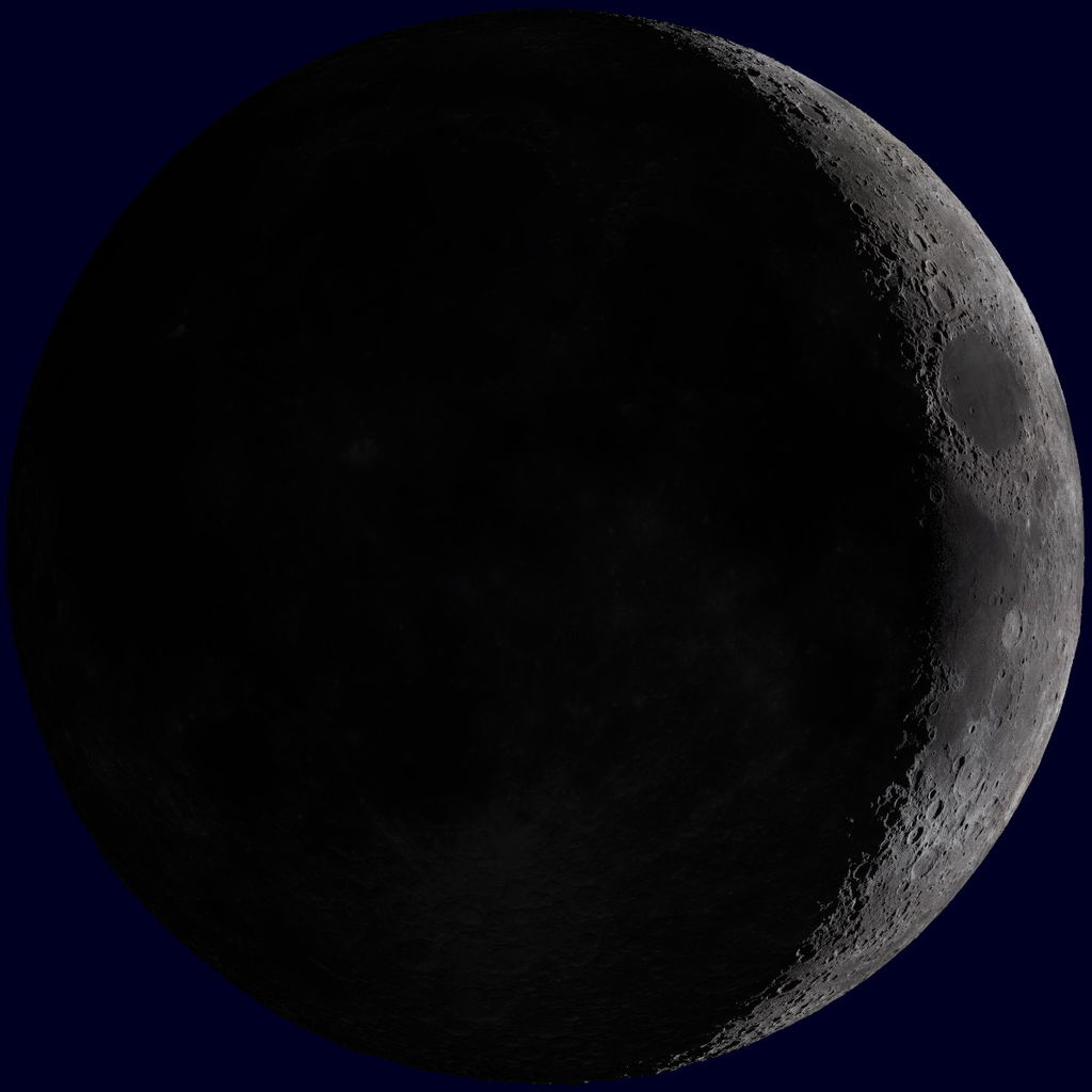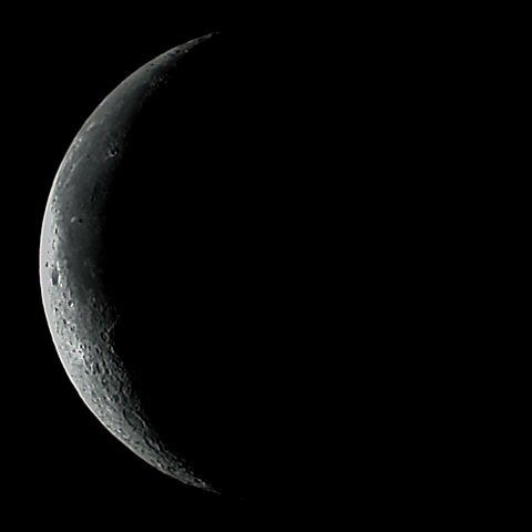 음력 29~30일 경에 관찰되고 초승달과 좌우가 반대되는 달이다. 저녁에 관측되는 초승달과 달리 새벽에 뜨기 때문에 관측이 어렵다.