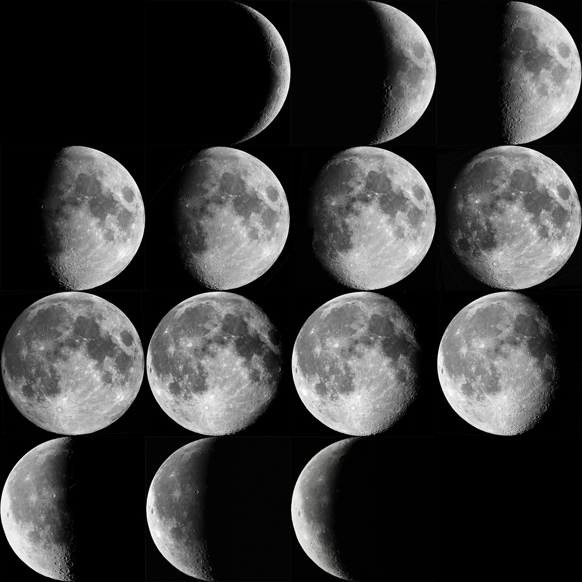 달은 스스로 빛을 내지 않는다. 그렇기 때문에 태양에 비친 쪽은 밝지만 반대쪽은 암흑 상태가 된다. 위치에 따라 태양과 같은 쪽에서 바라보면 만원(滿月) 즉 보름달이 보이고, 반대쪽에서 보면 신월(新月) 즉 달의 일부만 보게 된다.