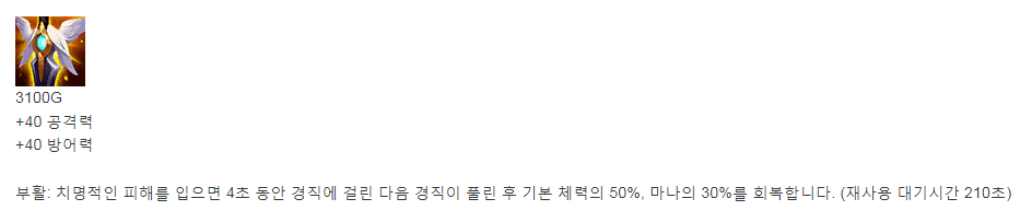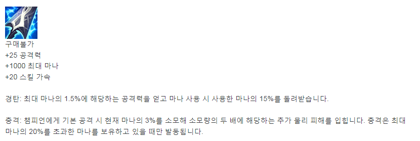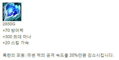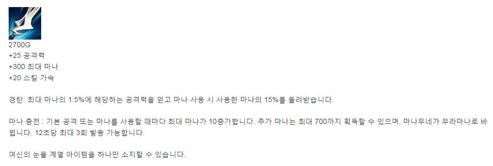 스킬 가속 + 마나 수급. 이 놈이면 맘껏 Q 날릴 수 있다.