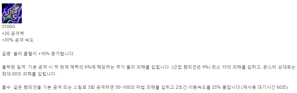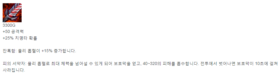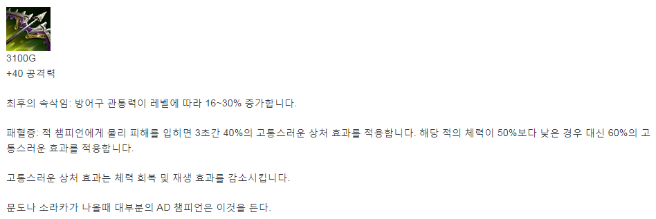 탱커나 체력 회복(재생) 챔 상대 필수템