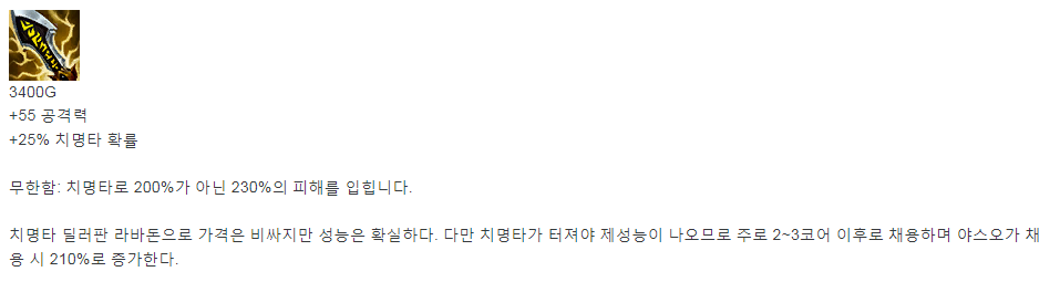 Q와 기본 공격이 핵심인 이즈한테 찰떡같은 아이템.