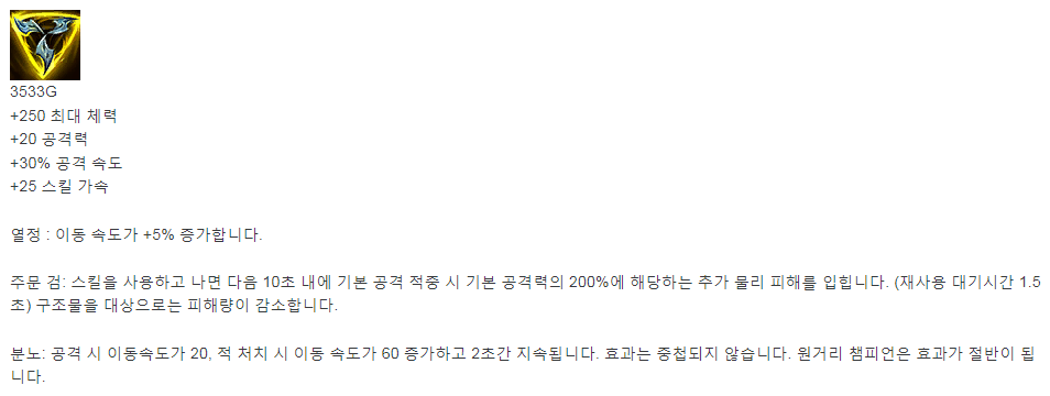 역시 Q와 기본 공격이 핵심인 이즈한테 찰떡같은 아이템.