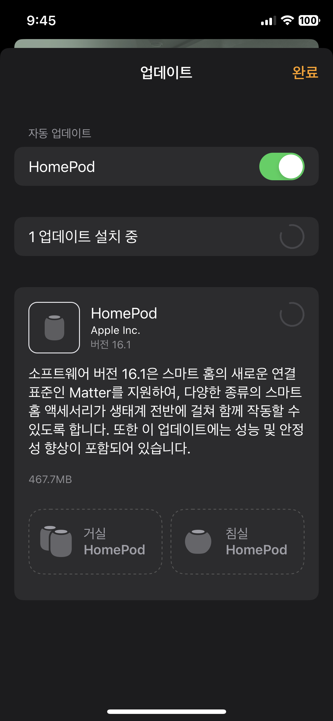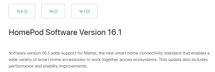 이번 업데이트를 통해 홈팟은 Matter를 지원하게 되며 성능과 안정성 향상 패치가 포함되어 있다.