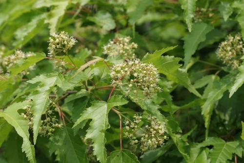 깊은 산 능선부에서 드물게 자라는 낙엽 활엽 떨기나무 또는 작은큰키나무로 높이 3~5m 정도이다. 어린가지에는 털이 있으며 짙은 갈색에 차츰 자갈색으로 변한다. 잎은 어긋나게 달리며 손바닥 모양, 길이 4~8cm, 3~5갈래로 깊게 갈라지고, 잎끝은 뾰족하고, 밑은 심장형이며, 잎 가장자리에 잔 톱니가 있다. 꽃은 5~6월에 피는데 산방꽃차례는 정생하고 털이 있으며, 백색이다. 꽃받침잎은 뒤로 젖혀지고 털이 있으며 꽃잎은 도란형이다. 암술대는 4개이다. 열매는 이과(梨果)로 구형, 지름 1~1.5cm이고, 9~10월에 적색으로 익으며, 껍질눈이 없다. 한반도 강원도 점봉산, 설악산 이북, 함경남·북도에 자생하며, 중국 만주에 분포한다. 관상용으로 심으며, 열매는 식용한다.