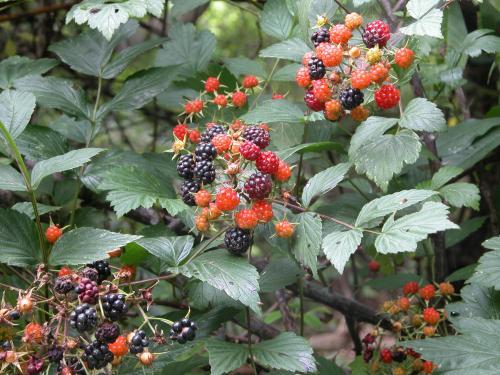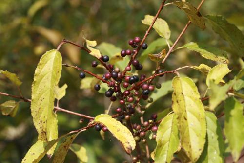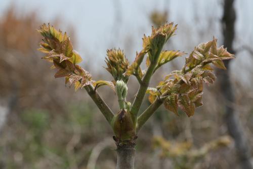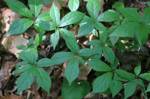 높이 1~7m까지 자라고 어린 가지에 바늘 같은 가시가 많다. 밝은 회색인 줄기 껍질은 가로로 갈라진다. 묵은 가지는 잿빛을 띤 밤색이고 어린 가지는 노란 밤색을 띤다. 작은 잎은 길이 6~10cm, 너비 2~4cm로 끝이 뾰족하며 잎 앞뒷면 잎맥 위에 털이 있다. 작은 잎 3~5장이 손바닥 모양으로 붙어 잎을 구성하는데, 서로 어긋나는 쪽잎으로 된 겹잎이며, 긴 잎꼭지가 있고 털이 없거나 드문드문 있다. 달걀모양의 잎 앞면은 어두운 풀색으로 짧은 털이 있거나 없으며 뒷면은 연한 풀색으로 끝은 둥글거나 뾰족하며 가장자리에 톱니가 있다. 잎줄에는 잔털이 있으며 암술대는 길이 1cm 정도로 완전히 합쳐지고 암술머리가 5개로 약간 갈라진다. 꽃잎, 수술, 암술은 각각 5개다. 보라색 또는 황색 꽃은 새로 나온 가지 끝에서 산형꽃차례에 무리 지어 핀다. 잎자루는 6~15cm이고 꽃받침은 톱니 모양이다. 열매는 검은색 핵과이다.
