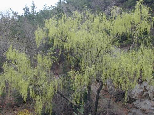 산지의 바위지대에 자라는 낙엽 큰키나무 또는 떨기나무로 높이 10m쯤이다. 나무껍질은 어두운 회색이며, 어린가지는 붉은 밤색이고 털이 있다. 잎은 가지에서 어긋나며, 난형, 길이 2~5cm, 폭 1.5~3cm로 끝은 뾰족하고 잎 가장자리는 겹톱니 모양이다. 잎자루는 길이 2~8mm, 긴 털이 있다. 꽃은 5월에 암수한그루에 핀다. 수꽃이삭은 가지 옆에서 밑으로 처지고 길이 4~5cm이다. 암꽃이삭은 가지 끝 잎겨드랑이에서 곧추선다. 열매이삭은 길이 1.5~2cm, 폭 1.4cm, 난형이다. 열매는 견과, 난형, 날개가 거의 없으며 9월에 익는다. 우리나라 중부 이북에 나며, 중국에 분포한다. 이 종은 암꽃의 꽃차례가 난형 또는 짧은 타원형인 점에서 긴 원통형을 갖는 대부분의 종들과 구별된다. 목재를 차량재, 가구재로 쓰며, 나무껍질은 염료로 쓴다.