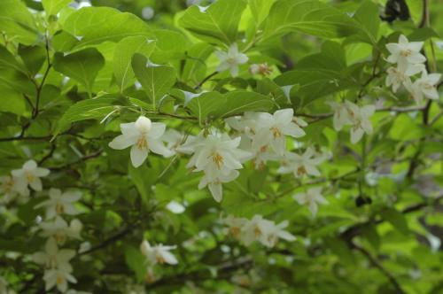 정원이나 공원에 조경수로 심어 기르는 높이 10m 정도의 낙엽 작은키나무이다. 가지는 연한 갈색으로 털이 없으나, 어린가지에는 털이 있기도 하다. 잎은 어긋나며, 타원형 또는 난상 타원형으로 길이 10~20cm, 폭 5~10cm, 가장자리에 돌기 같은 톱니가 있으며, 끝은 뾰족하다. 잎 앞면은 녹색으로 퍼진 털이 있고, 뒷면은 회백색으로 맥 위에 퍼진 털이 있다. 잎자루는 길이 4~25mm다. 꽃은 6월에 길이 10~20cm인 겹총상꽃차례에 달린다. 꽃받침잎은 삼각형이다. 꽃부리는 반쯤 벌어지며, 길이 6~8mm, 흰색, 열편은 도피침형이다. 열매는 핵과, 좁은 도란형, 길이 7~8mm, 10개의 능선이 있다. 일본 원산으로 우리나라 전역에서 식재한다. 열매에 씨가 여러 개 들어 있어 국내에 자생하는 때죽나무속 식물들과 구분된다.