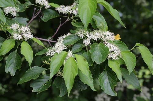 산 중턱이나 산골짜기에 자라는 큰키나무로 높이 10m 내외다. 나무껍질은 회갈색이고 세로로 갈라진다. 가지는 황갈색 또는 적갈색, 털이 없고 윤기가 난다. 잎은 마주나며, 길이 1~3cm의 잎자루가 있다. 잎몸은 타원형 또는 넓은 난형, 길이 8~18cm, 폭 3~10cm, 끝은 점차 뾰족해지고, 밑은 뾰족하거나 잘린 모양 또는 둥글고, 가장자리는 밋밋하거나 물결 모양이다. 잎 앞면은 작은 센털이 있고 윤기가 나며, 뒷면은 연녹색 또는 흰색으로 6~8쌍의 측맥이 있다. 꽃은 6~7월에 가지 끝에서 원추상 취산꽃차례에 달리며, 꽃자루는 길이 3~4cm이다. 꽃받침은 길이 2mm 정도이고 흰 털이 빽빽하게 난다. 꽃잎은 넓은 피침형, 길이 4~5mm, 누런빛이 도는 흰색이다. 열매는 핵과, 둥글며, 검푸른색이다. 우리나라 충청남도 이남에 나며, 타이완, 일본, 중국 등에 분포한다. 이 종은 말채나무에 비해서 잎의 측맥이 6~8(~10)쌍으로 많고, 꽃잎은 누런빛이 도는 흰색이므로 구별된다.