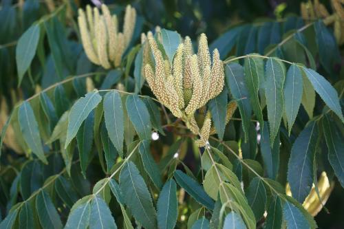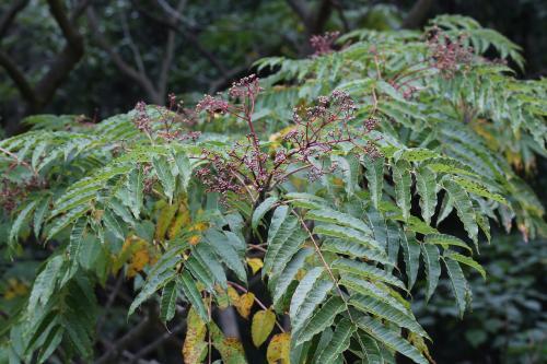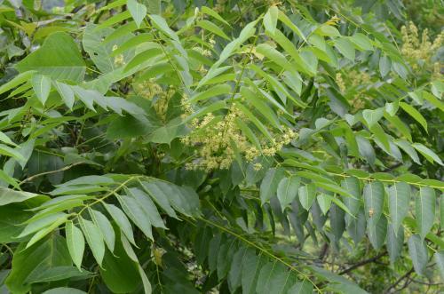 소태나무과에 속하는 낙엽 큰키나무이다. 줄기는 높이 10-20m이다. 어린 가지에 황색 또는 황갈색 털이 있다가 없어진다. 잎은 작은 잎 13-27장으로 이루어진 깃꼴겹잎이며, 길이 30-100cm이다. 작은 잎은 난상 피침형으로 길이 6-15cm, 너비 2-5cm, 가장자리에 톱니가 있다. 잎자루는 길이 7-13cm이다. 꽃은 5-7월에 길이 15-30cm의 밀추꽃차례를 이루며, 단성이다. 꽃받침잎은 5-6장, 삼각형이고, 길이 1mm쯤이다. 꽃잎은 5-6장, 길이 3mm쯤이며, 아래쪽에 털이 밀생한다. 수술은 10개이다. 수술대는 아래쪽에 거친 털이 밀생하며, 수꽃에서는 꽃잎보다 길고, 암꽃에서는 꽃잎보다 짧다. 암술은 5개이고, 각각 1실이다. 암술머리는 5갈래로 갈라진다. 열매는 시과이며, 적갈색, 납작하고, 장타원형이다. 씨는 난상 구형이고, 시과의 중앙에 위치한다. 우리나라 전역에 귀화하여 자라며, 세계적으로는 일본과 중국에 분포한다.