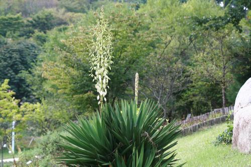 북아메리카 원산이며 정원, 화단에 관상용으로 식재하는 상록 떨기나무이다. 높이 5m쯤이고 로제트형을 이루어 직립하는 줄기가 모여난다. 잎은 곧으나 뒤틀리기도 하며 피침형이고 납작하나 끝부분이 오목하며 길이 40~100cm, 폭 3.5~6.0cm이다. 녹색 또는 청록색이며 끝이 뾰족하고 가장자리는 밋밋하거나 불규칙한 톱니 모양이며 나중에 섬유질로 되고 어릴 때는 윤기가 난다. 꽃은 여름부터 가을까지 꽃줄기 끝의 원추꽃차례에 밑을 향해 달린다. 꽃부리는 초롱꽃 모양이고, 화피편은 타원형 또는 좁은 난형이며 길이 4~5cm, 폭 2.0~2.5cm, 흰색 또는 연한 녹색이다. 열매는 대개 맺지 못하나 간혹 장과로 폐과이고 긴 타원형이며 길이 8cm쯤이고 직립하거나 밑을 향해 달리며, 날개가 6개 있다. 씨는 검은색이다. 우리나라 남부지방에서 식재하며, 원산지는 북아메리카에서는 바닷가 모래언덕에서 자란다. 실유카는 잎의 가장자리에 실 모양으로 섬유질이 많이 달려 있어 유카와 구분된다. 관상용으로 식재한다.
