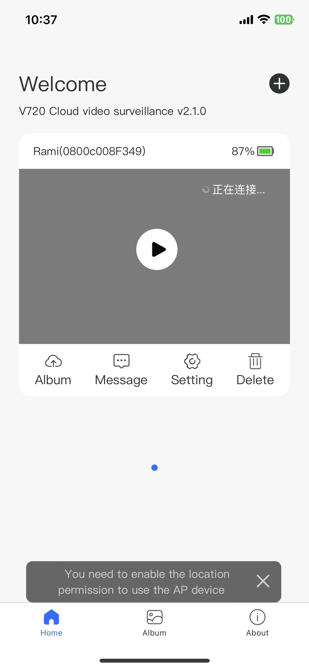 카메라 추가가 완료화면을 볼 수 있다.