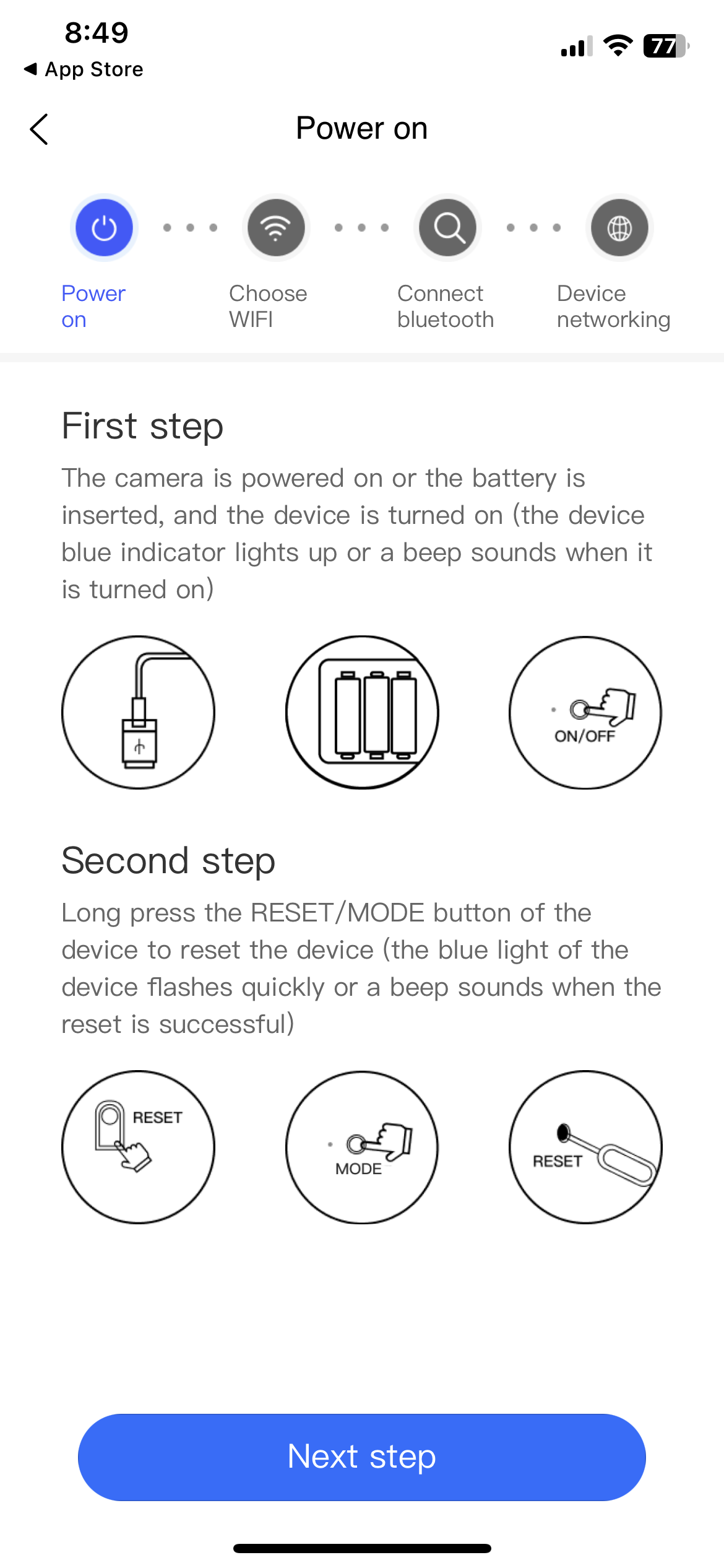 그리고 "MODE"의 LED가 빨리 깜빡일 때까지