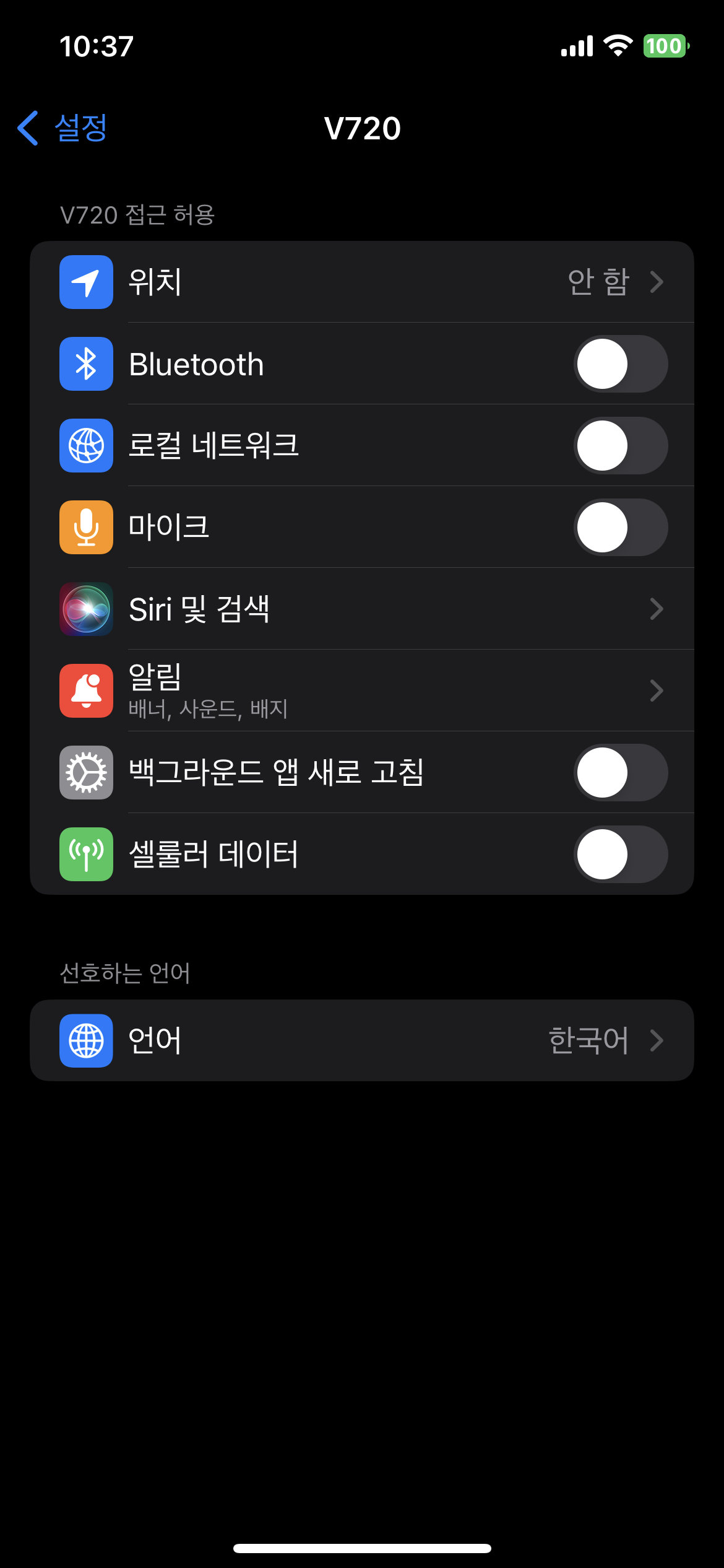 그리고 찝찝하니까 아이폰 앱 권한 설정에서