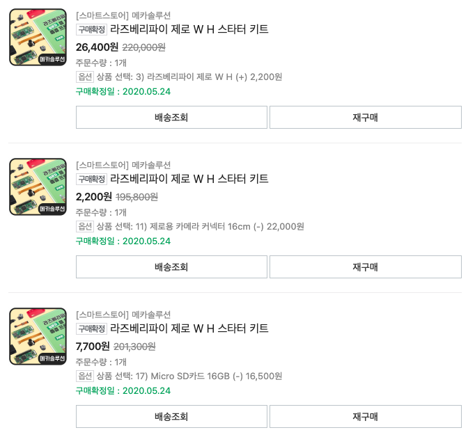 - 카메라 모듈: 제로용 카메라 모듈을 따로 판다. 난 알리에서 샀다.