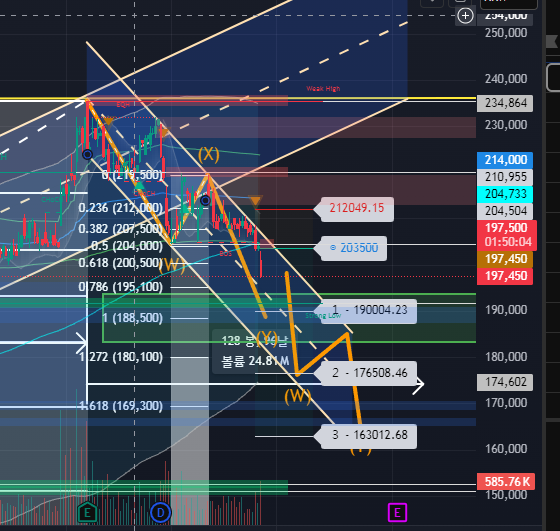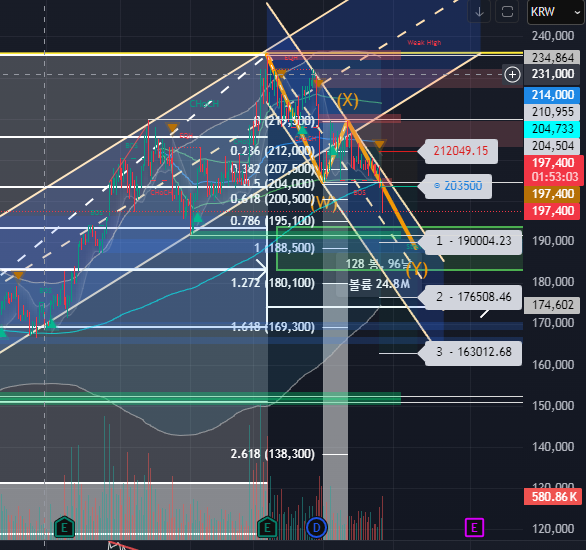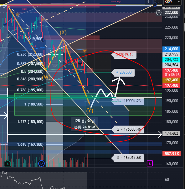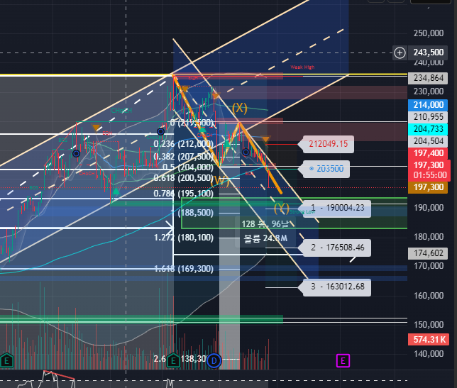 바닥부터 올라온 상승의 0.5배 되돌림 구간 193,500