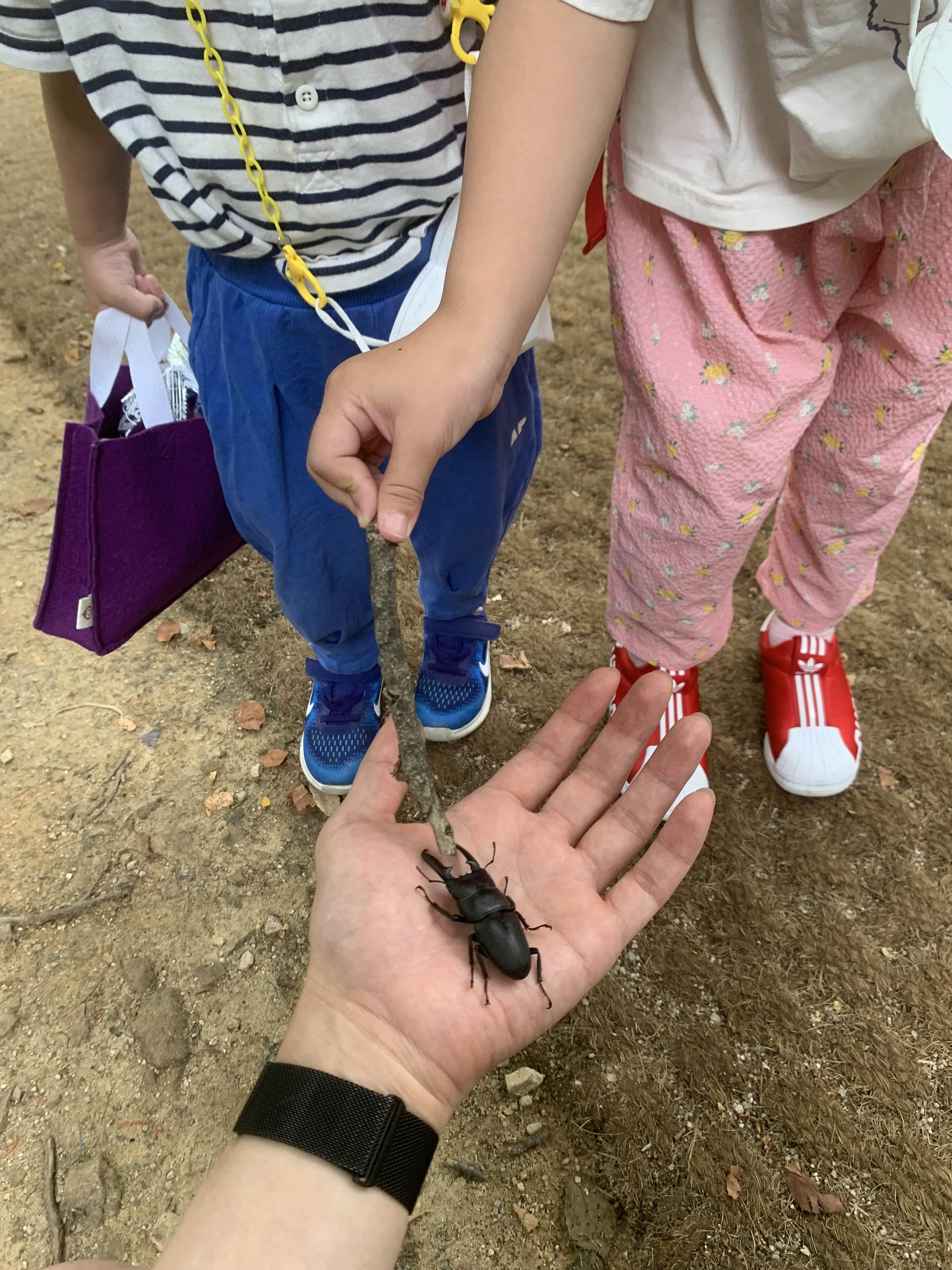매미산 초입부터 기분 좋은 일이 생겼습니다. 잡으려고 눈을 크게 뜨고 다닐 때는 그렇게 안 보였는데 사슴벌레가 눈앞에 딱! 애들이 정말 신기해하고 좋아하네요.
