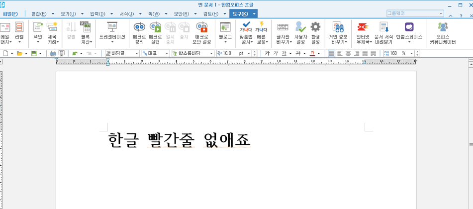 체크를 풀고 다시 확인해보면 맞춤법이 틀리더라도 빨간 줄 없이 잘 나오는 것을 확인할 수 있습니다.
