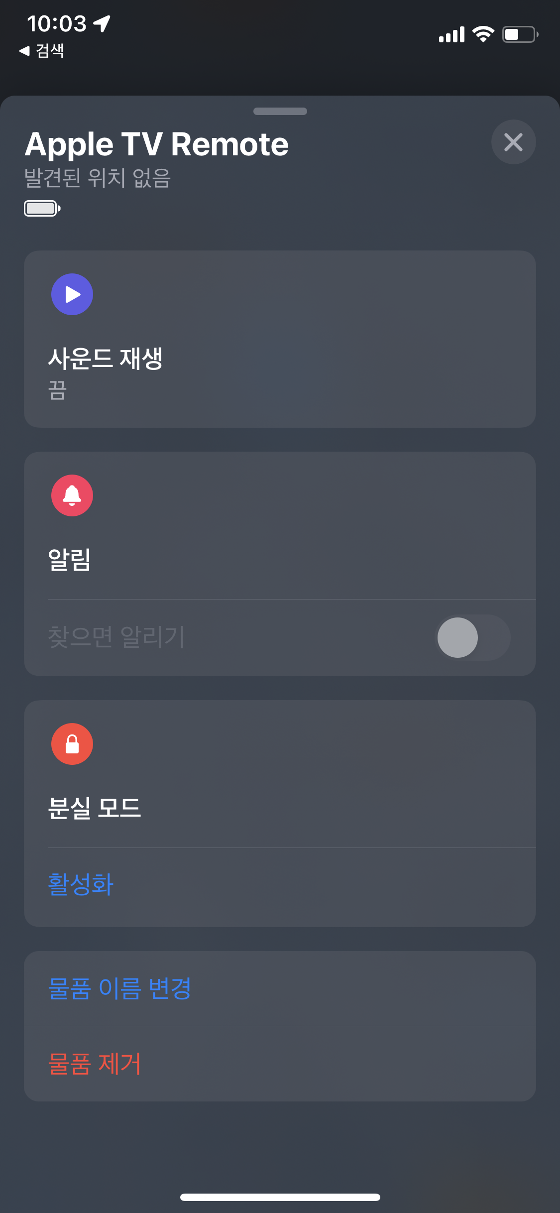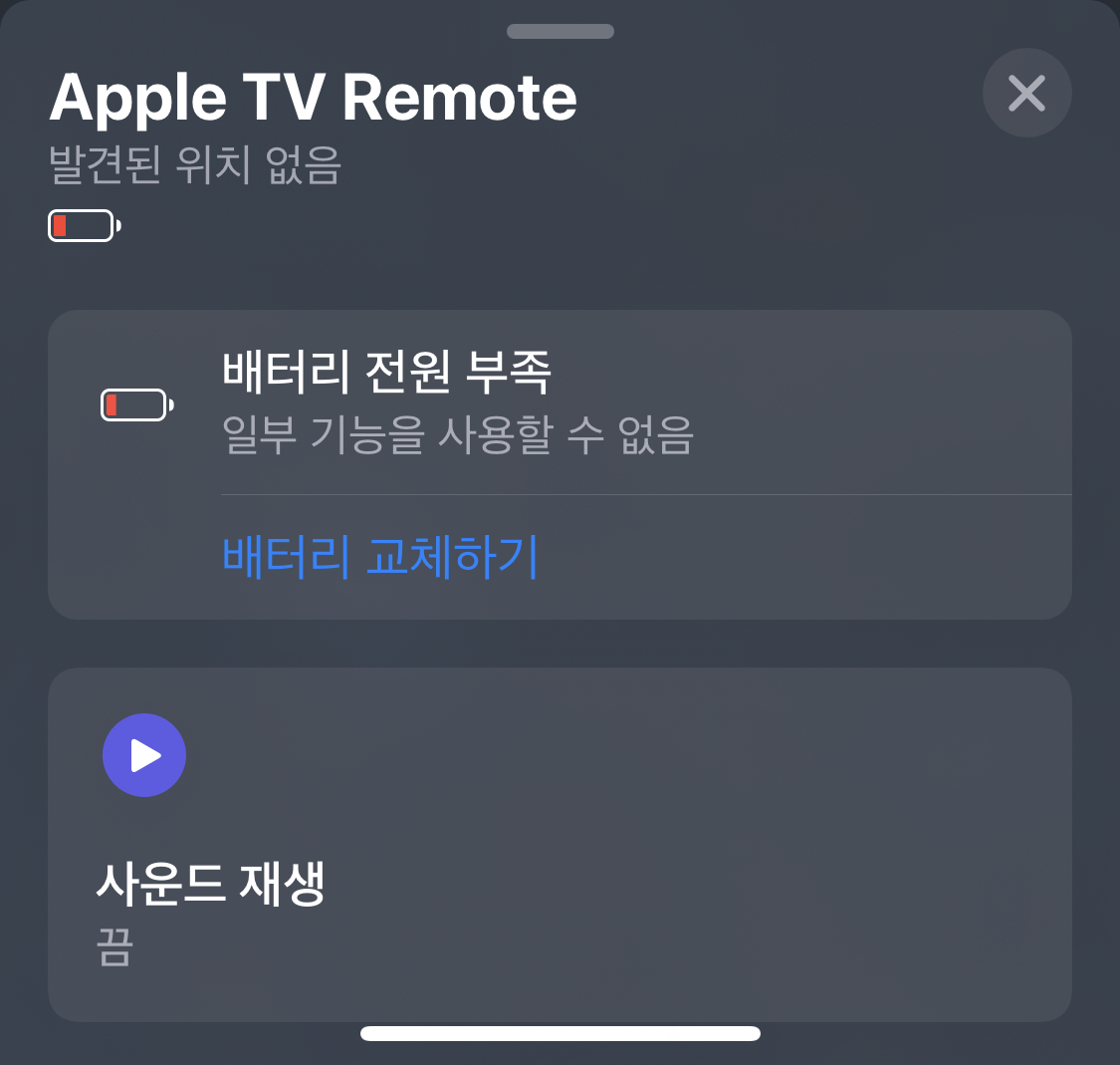애플TV 리모컨에 달아놓은 에어태그 배터리가 부족하다고 알림이 왔다. 딱 1년 정도 쓴 것 같은데 4개 중에 상대적으로 사용 빈도가 잦았던 리모컨 에어태그가 먼저 교체 주기가 되었다. 리모컨은 왜 항상 안 보이는지…
