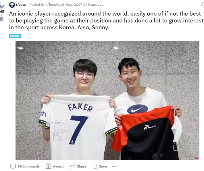과거 SKT CF로 이어진 손흥민과 페이커의 인연이 이번에 토트넘이 T1 선수단을 초청하면서 다시 연결되었습니다. 두 선수의 사진이 올라오고 뜨거운 관심을 얻었습니다. 손흥민 선수 못지 않게 페이커 선수의 인기도 대단하다는게 느껴집니다. 토트넘 팬 커뮤니티에 올라온 글이고 손흥민하고 같이 찍은 사진인데 다들 페이커 얘기만 하네요. ㅎㅎ
