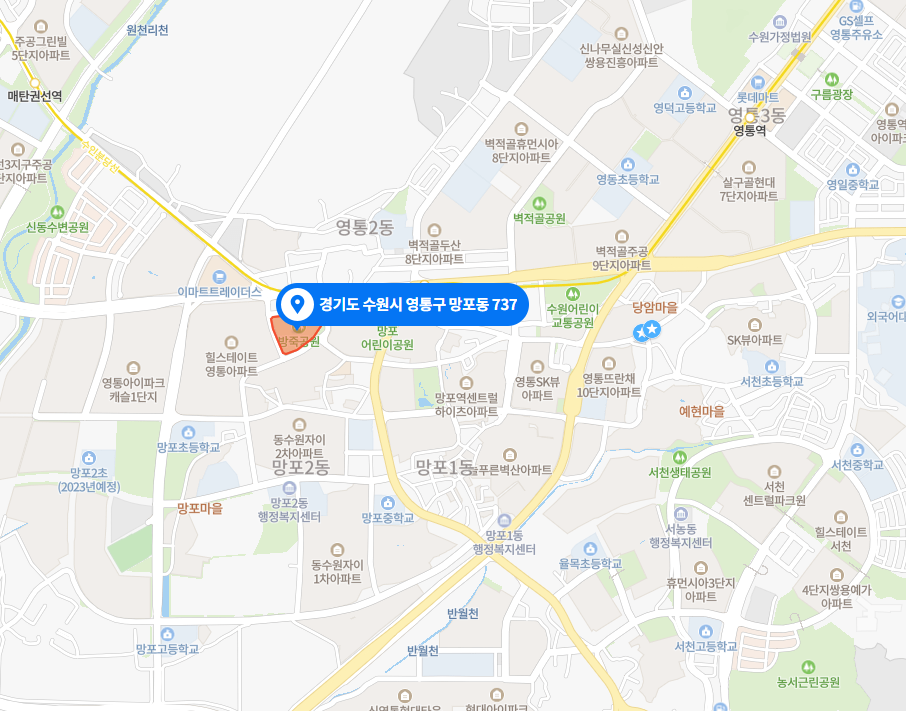 | 영통구 | 매여울공원 | 매탄동 1338 | 물놀이시설 | 상수도 | 7/6 ~ 8/31 | 10 ~ 17시 | |